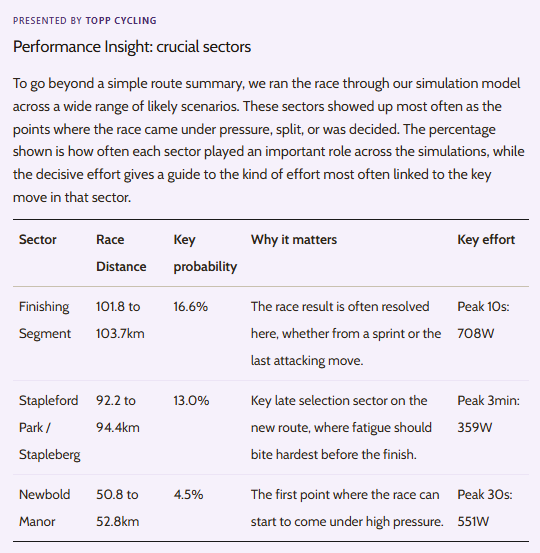 A snapshot of the Rutland-Melton CiCLE Classic race preview by Topp Cycling (crucial race sectors).